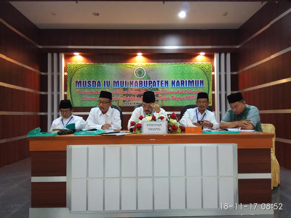 MUSDA (Musyawarah Daerah) IV MUI (Majelis Ulama Indonesia) Kabupaten Karimun tahun 2017 telah berakhir, Sabtu (18/11/17) sore. Setelah dibuka Bupati Karimun, H. Aunur Rafiq secara resmi pada Jumat (17/11/17) malam kegiatan berlangsung maraton namun berjalan aman dan lancar. Sesuai tata tertib dan jadwal yang sudah disepakati, kegaiatan dapat terlaksana dari awal hingga akhir dengan baik.