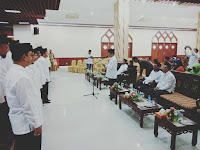 Setelah dua sambutan tersebut barulah pembacaan SK pengurus FKUB. Ketika membacakan lampiran SK tersebut, setiap nama pengurus yang dipanggil, langsung mengambil tempat ke depan dan berbaris lurus dari tengah menuju kanan-kiri hingga tujuh belas orang pengurus dan anggota FKUB lengkap. Selanjutnya, bupati maju untuk melantik ke-17 orang pengurus dan anggota itu.